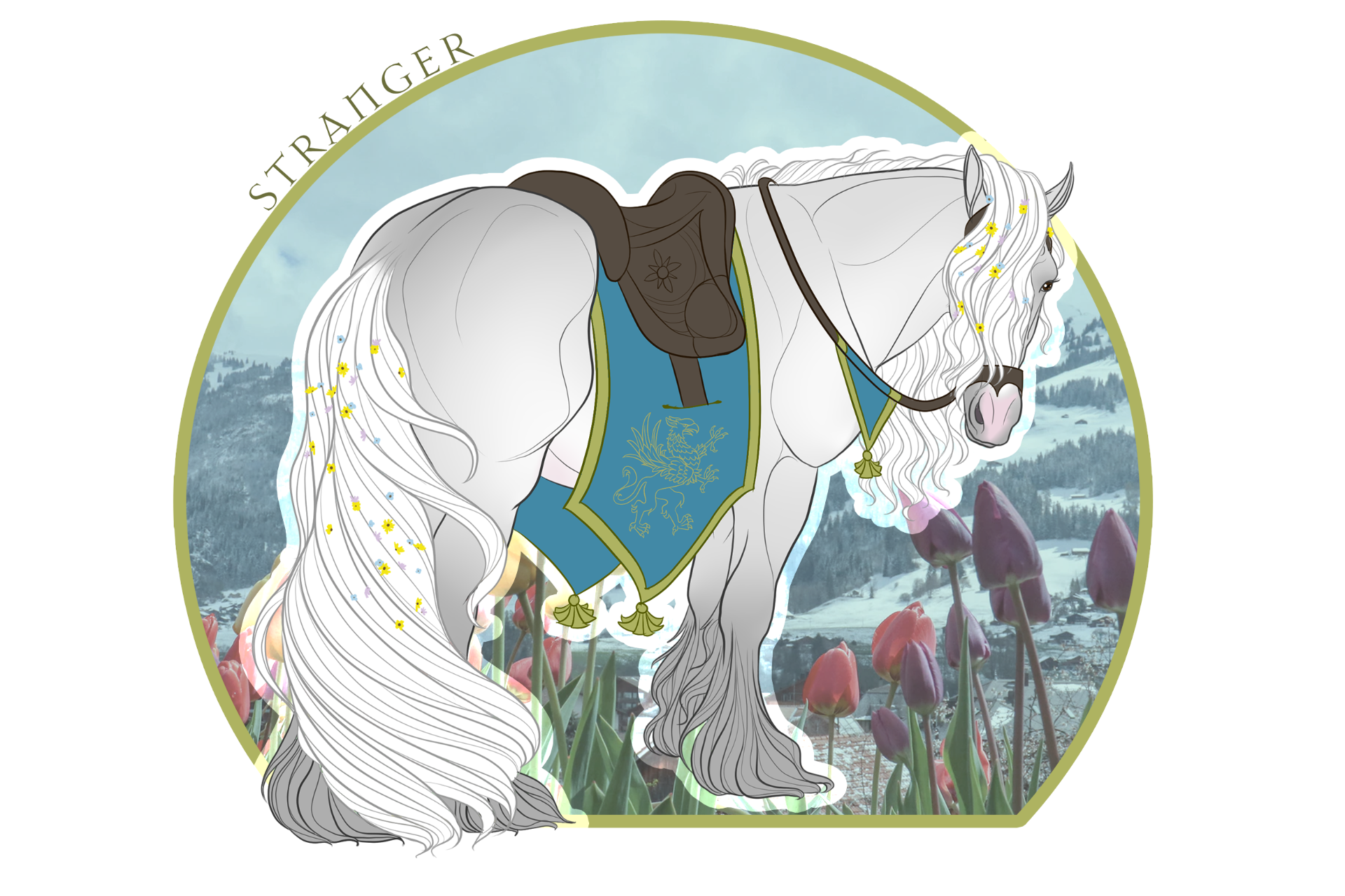 Pets // Foglet, a dapple-grey Percheron mare and Ia's sweet gentle giant. An opossum named Mandrake, who she rescued and often has resting on her shoulder, lap, or somewhere nearby. Also, a mangy feral tomcat who she's yet to name.
